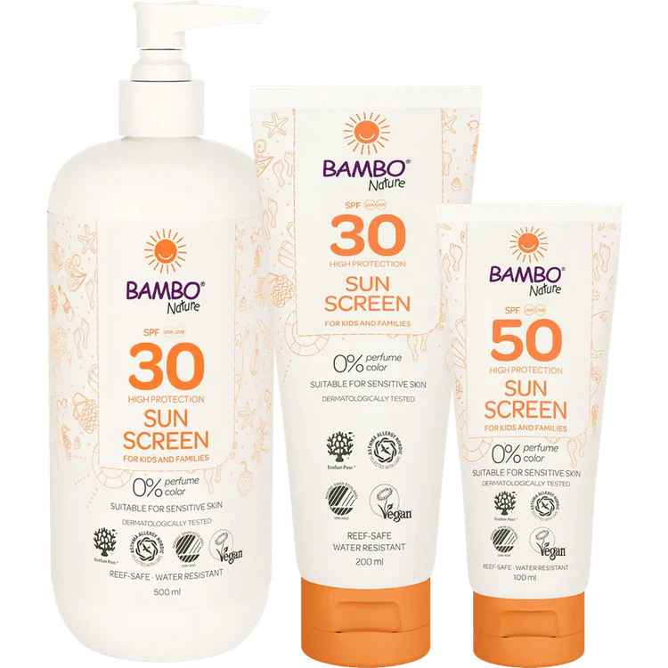 Wenn es um Deine Liebsten geht, ist nur das Beste gut genug. Und deshalb enthält unsere Bambo Nature Sonnencreme 0 % Parfüm oder Farbstoffe und wird mit Liebe für Dich und Deine Familie hergestellt.